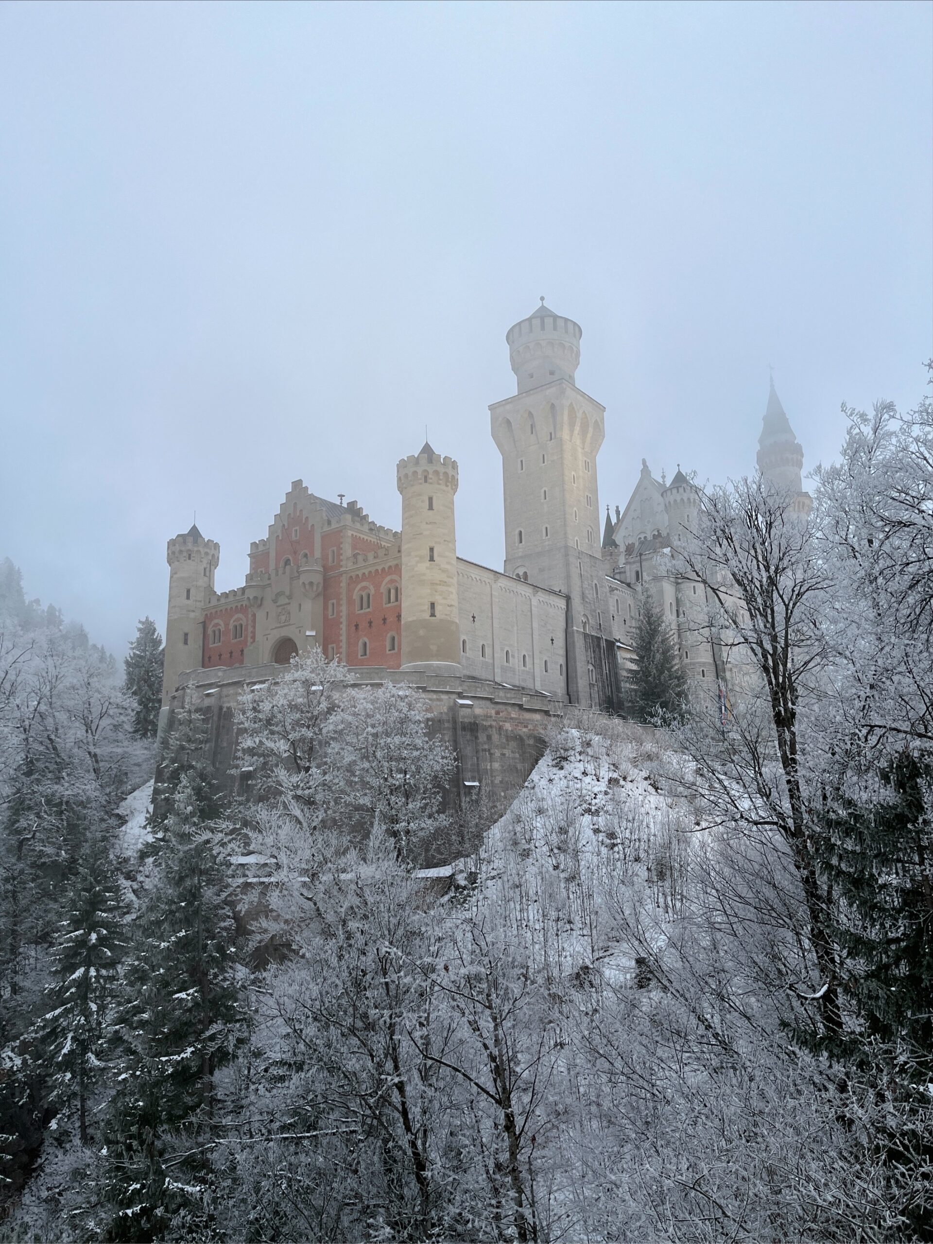 A paisagem ao redor do castelo é completamente transformada. Os Alpes Bávaros, os vales verdejantes e as florestas densas passam a ser cobertos por neve.