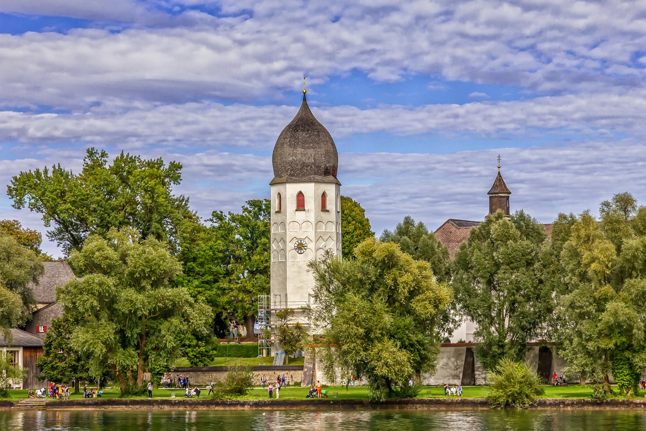 A poucos minutos de barco está a Fraueninsel (ilha das mulheres) ou também conhecida como ilha Frauenchiemsee, com o antigo mosteiro Frauenwörth, um vilarejo acolhedor com e cafés/lojinhas locais. É um passeio perfeito para combinar com Herrenchiemsee e aproveitar a atmosfera tranquila do lago. Informações sobre a ilha e o mosteiro estão disponíveis nos sites oficiais do convento e do turismo do Chiemsee.